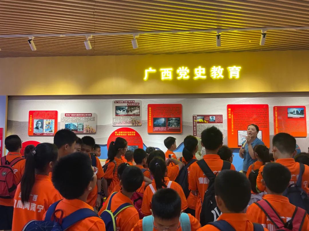 活动中,孩子首先来到党性教育基地,在讲解员引导下,认真聆听中共党史与广西抗战史介绍,初步了解抗战期间广西军民英勇奋战的历程。随后,高峰阁远眺昔日的战场,生动的现场解说,孩子们仿佛回到八十多年前烽火连天的峥嵘岁月,深刻感受中国将士坚定的爱国主义情怀与不屈的民族精神。