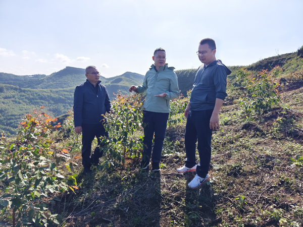 2025年11月12日,高峰林场副场长黄正根到南宁造林部检查2025年国土绿化和双重项目实施情况,深入罗城仫佬族自治县东门镇佑洞村检查项目地块的造林成效和管护工作。