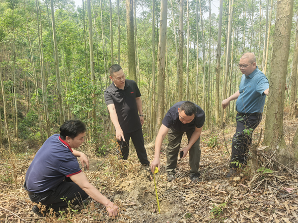 黄正根(右二)查看清塘镇新竹村黑木相思补植情况