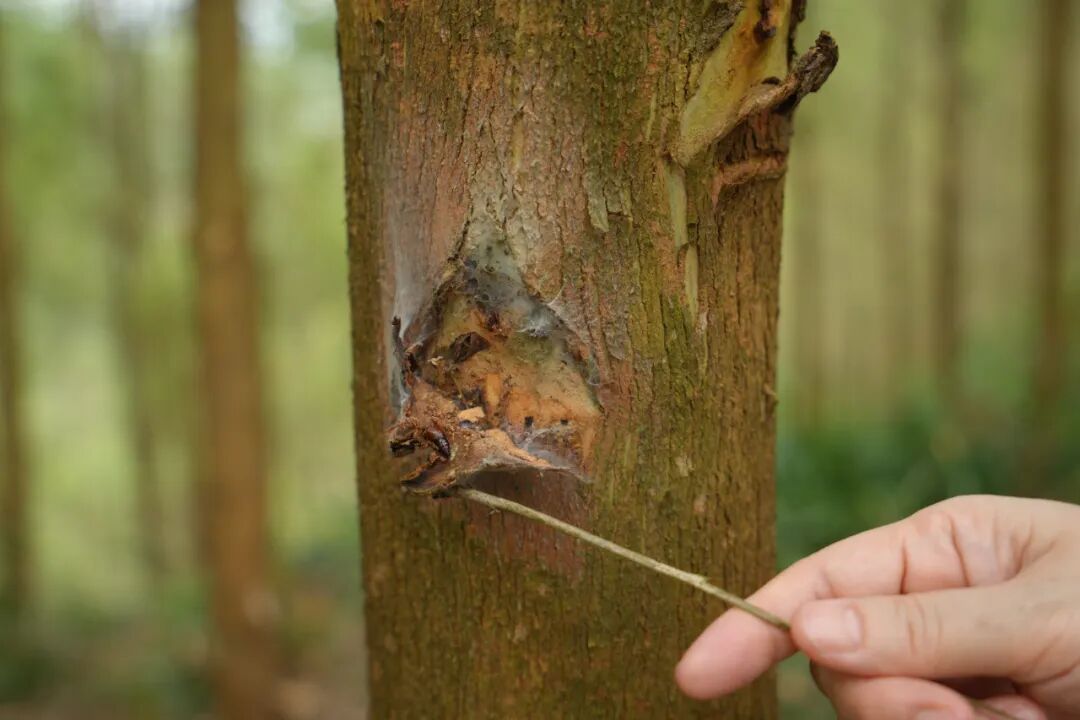 针对蛀食树木枝干的木蠹蛾防治难题,创新采用“中医”疗法:采用无人机喷洒叶面肥和药物相结合的方法,增强林木免疫力。156.6亩桉树林试验结果显示,防治成效提升80%,而成本降低33%