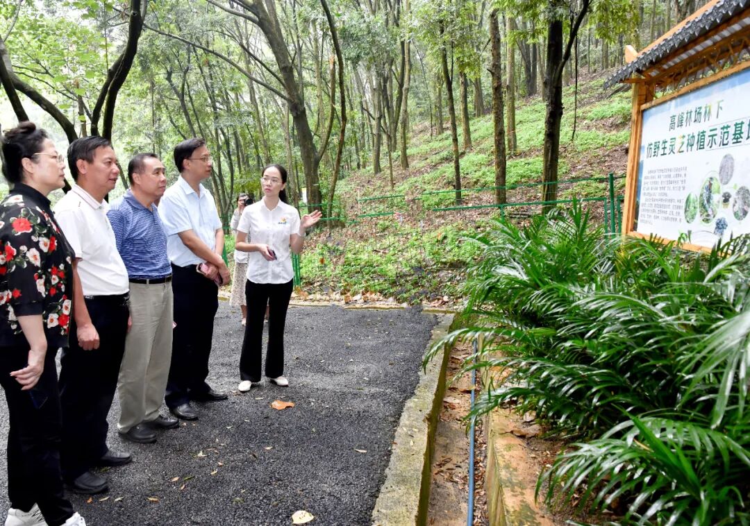 南宁市人大常委会秘书长范卫东率调研组实地走访了高峰森林公园,查看了高峰阁、火车风情园、精灵王国等项目建设进度,参观了林下产品展示馆和林下灵芝种植基地。