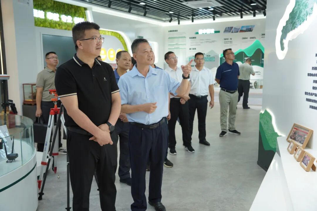 调研组参观广东省林业调查规划院成果展示馆。图前左二为广东省林业调查规划院院长林寿明,前左一为高峰林场场长李松海,右二为高峰林场副场长魏国余,右四为高峰林场副场长黄正根