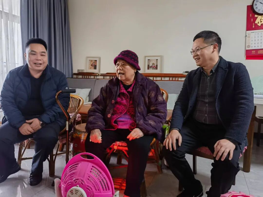 高峰林场副场长黄正根(右一)走访慰问退休职工。岑毅摄