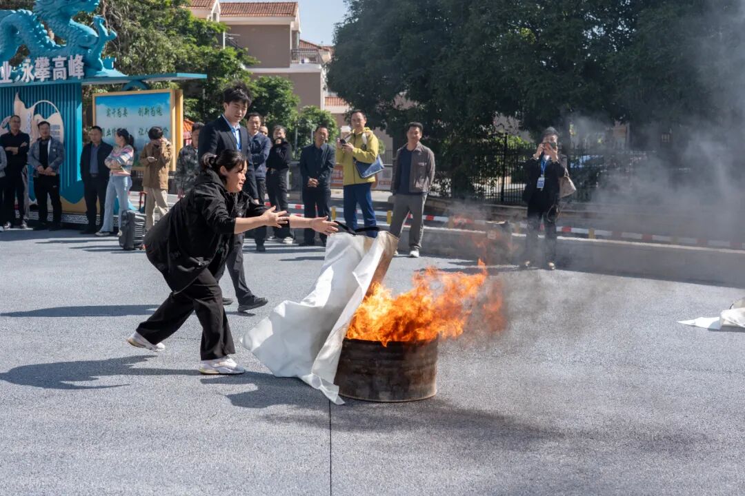 广西桂澜消防职业培训学校校长蓝桶生应邀到场,讲授典型火灾案例剖析、城市火灾逃生技巧、应急疏散和现场救护等知识。现场还演示了灭火器规范操作、逃生绳结技巧、防毒面具佩戴、灭火毯及消防栓使用方法,并组织参训人员进行实地模拟演练。