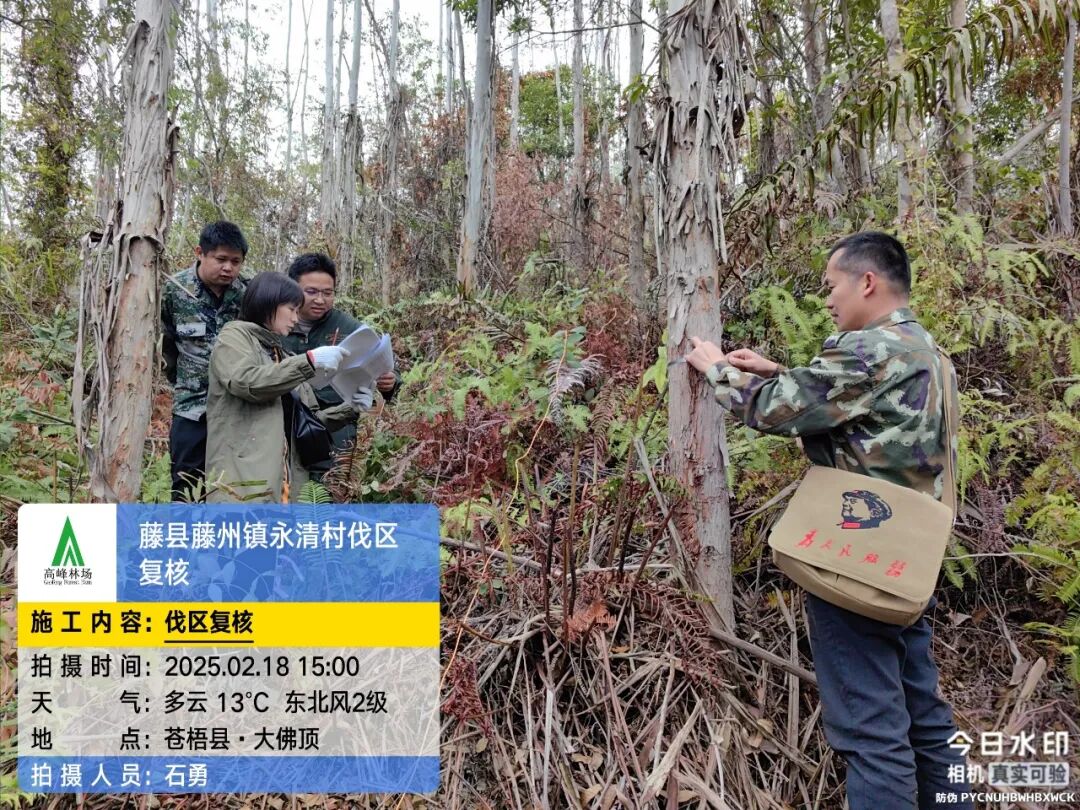 外造办、督查办、营销科联合对藤县造林部伐区进行现场复核。石勇 摄