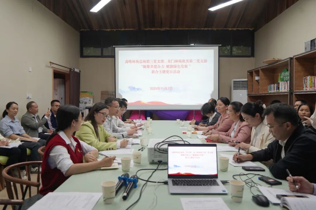 2025年11月7日,高峰林场总场第三党支部与东门林场机关第二党支部联合开展“凝聚共建合力 赋能绿色发展”主题党日活动。高峰林场党委书记陆珍先,党委副书记、纪委书记李大华,东门林场党委副书记、纪委书记刘秀媚参加活动。