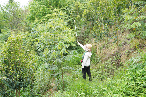 广西高峰林场与广西农业科学院合作在高峰林场界牌分场14林班开展猴耳环种植实验,种植一年,长势喜人,坡底和山沟边的猴耳环高达2.7米、地径胸径为3.2厘米,山顶的0.8米、地径胸径1.1厘米,平均株高约为1.6米、地径胸径2.3厘米。