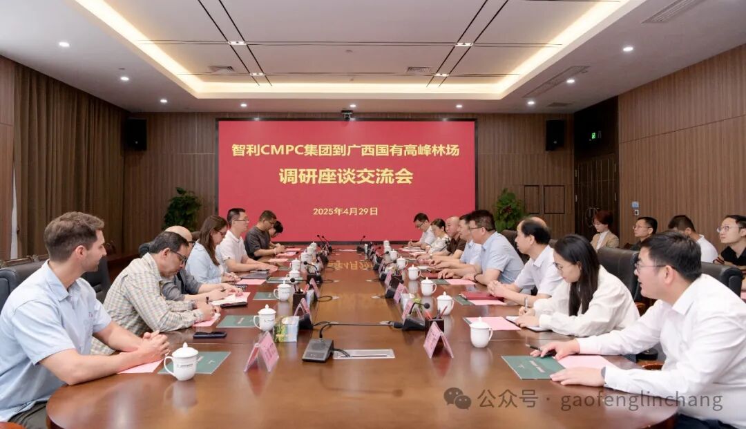 429日,广西人工林种植行业协会携同智利CMPC集团一行9人到高峰林场考察调研