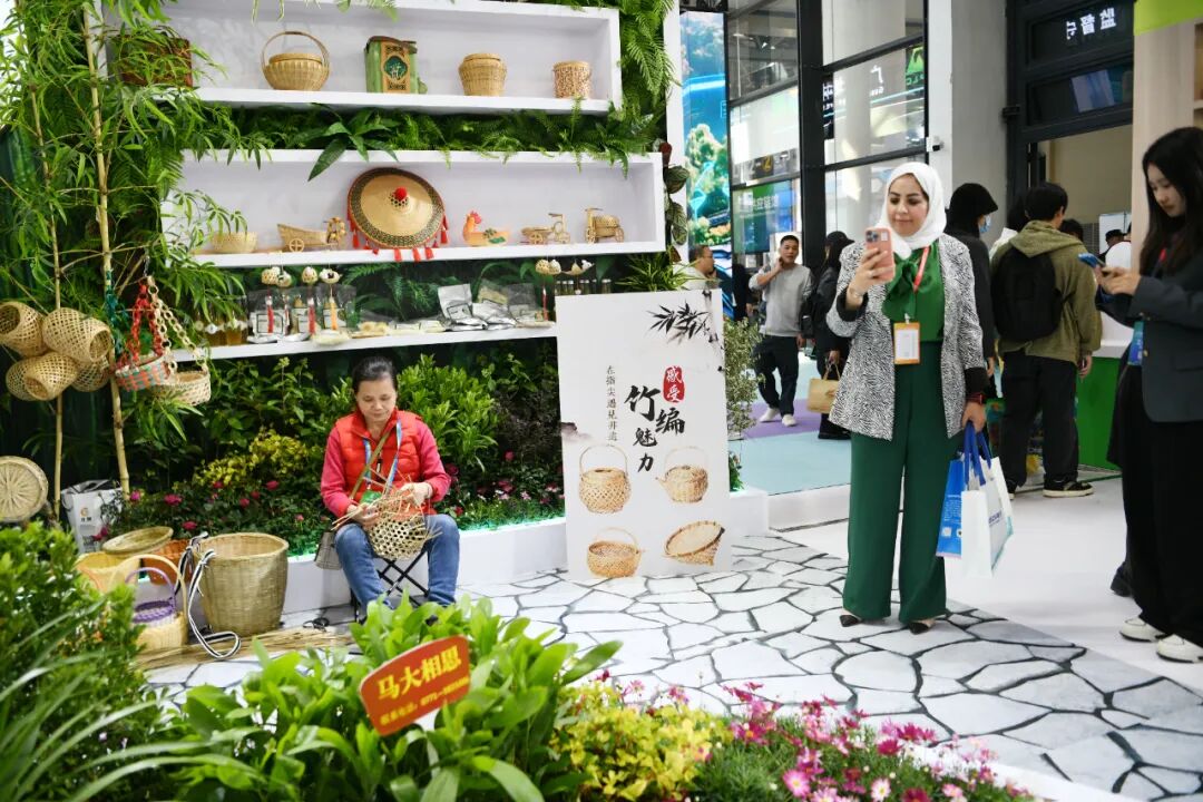 从灵芝茶、养生糕到竹编工艺品,从创新饮品到传统香料,展厅中的每一件产品都富含独特的“鲜”与“香”,这些,都是时间、技艺与自然的匠心交融。